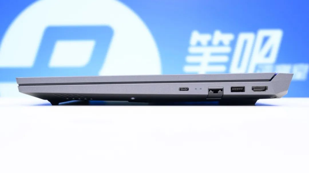 机身右侧依次为HDMI2.1(独显输出)、USB-A 5Gbps、RJ45网口、USB-C 10Gbps(支持DP1.4独显输出)。