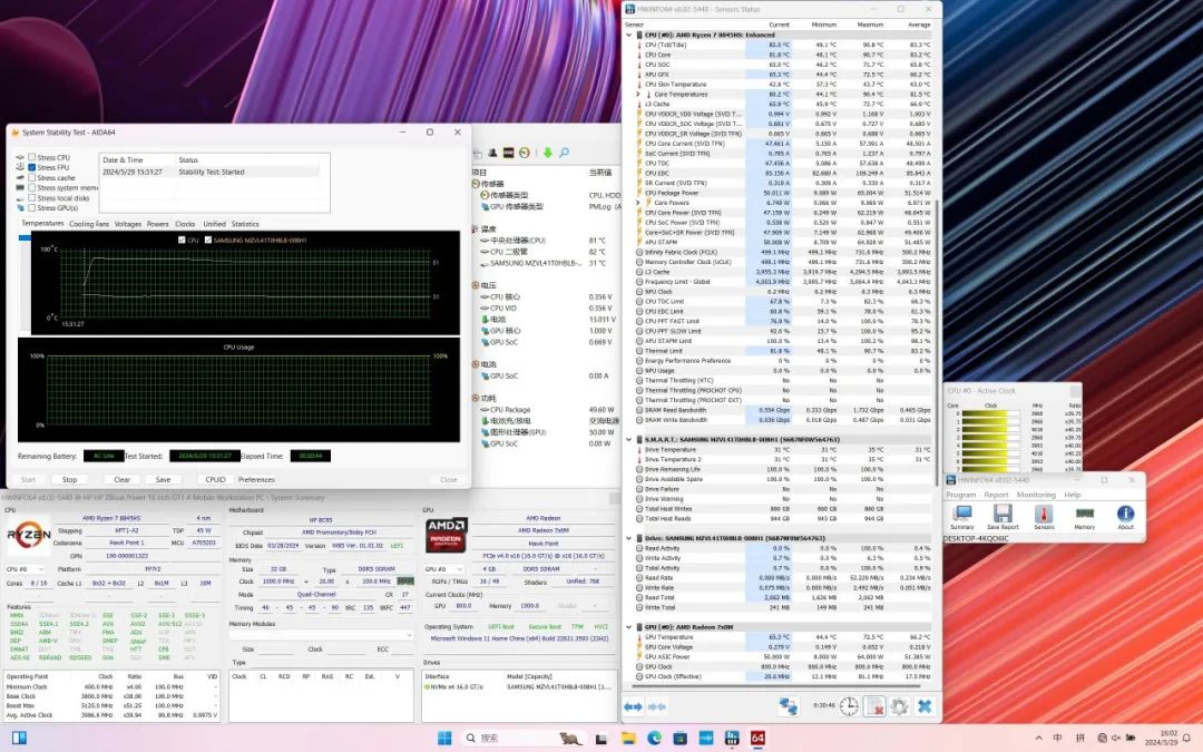总的来说,惠普 战99 锐龙版的散热表现中规中矩,温度和噪音都控制得比较好,性能释放其实有余量做个高性能模式,可以更激进点。