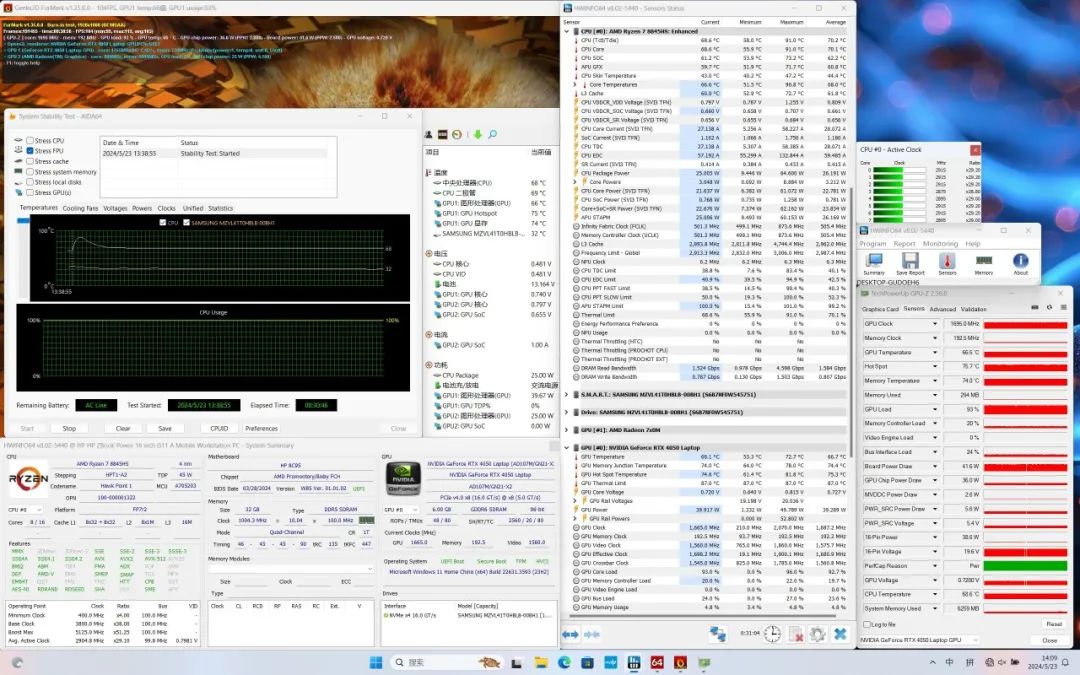 总的来说,惠普 战99 锐龙独显版的散热表现中规中矩,温度和噪音都很低,同时性能释放也很低,整体处于保守调校的状态。
