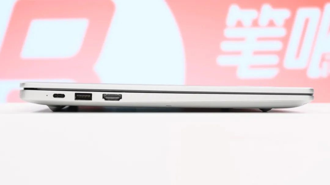接口方面,机身左侧依次为USB4 20Gbps(支持100W PD充电与视频输出)、USB-A 5Gbps、HDMI2.0;