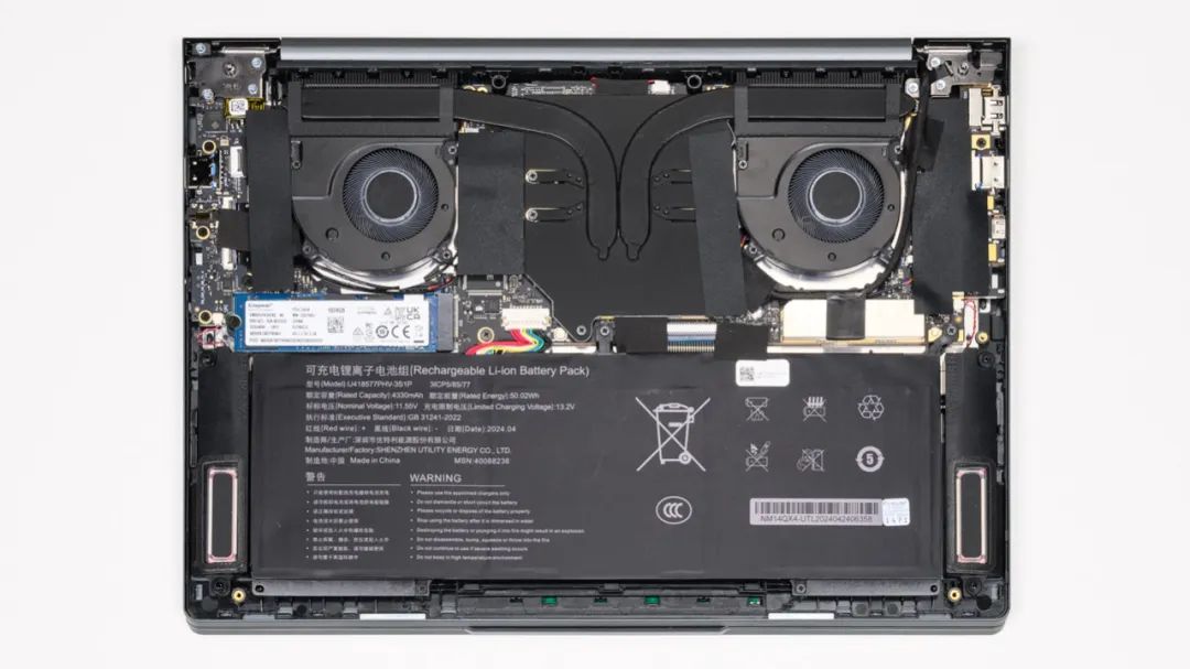上图是宏碁 非凡Go Pro AI的拆机实拍图,双风扇双热管的组合。