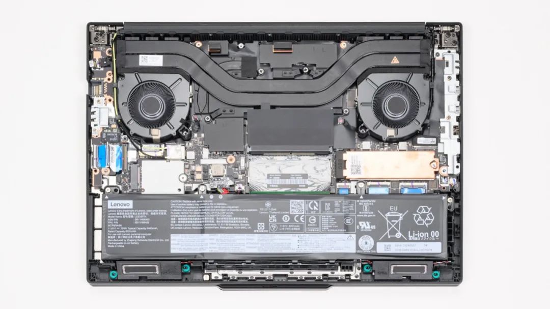 上图是ThinkPad P14s 2024的拆机实拍图,三热管双风扇的组合。