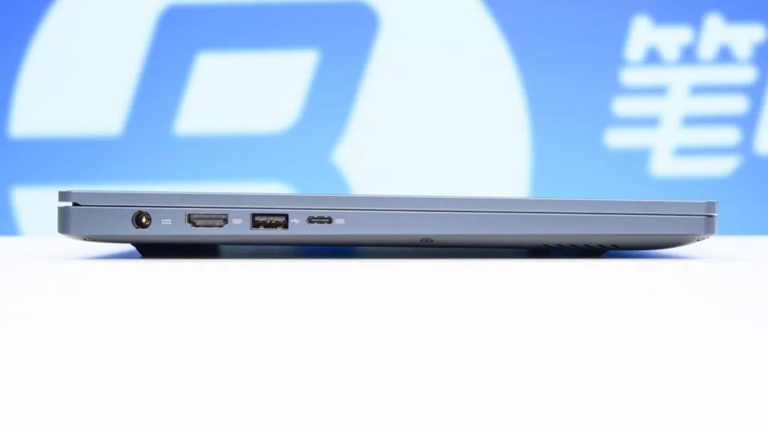 接口方面,机身左侧有DC电源口、一个HDMI2.1(独显输出)接口、一个USB-A 10Gbps接口以及一个USB-C 10Gbps接口;