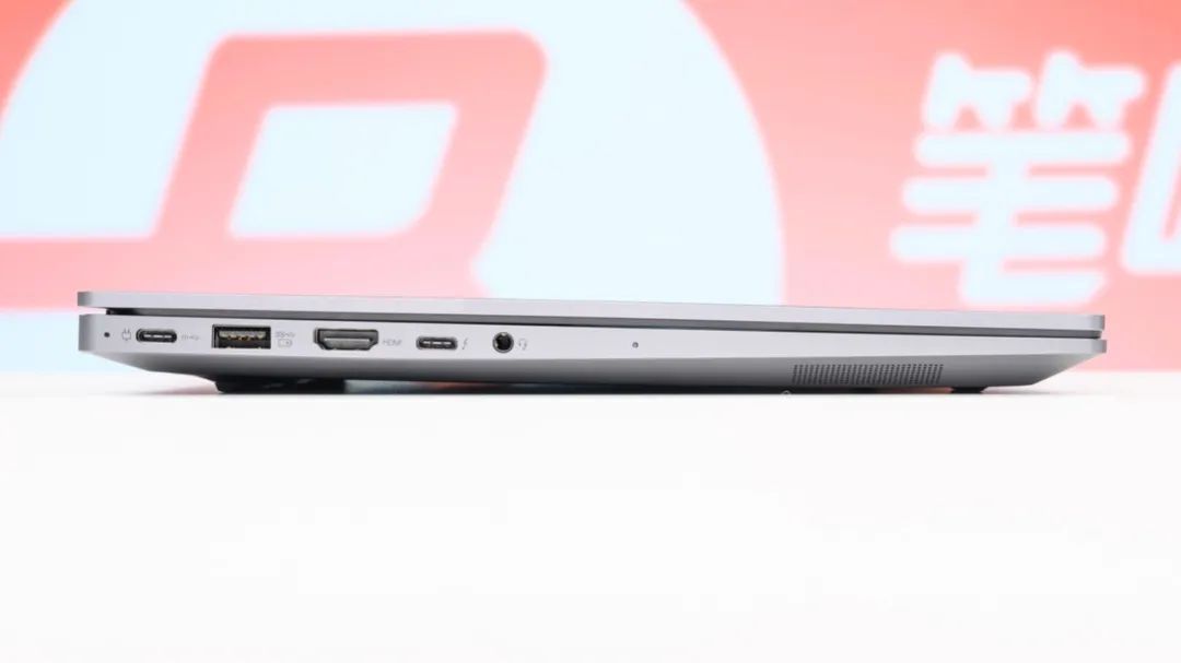 接口方面,机身左侧依次为USB-C 10Gbps(支持100W PD充电和DP1.4视频输出)、USB-A 5Gbps、HDMI2.0、USB4(支持100W PD充电和DP1.4视频输出)和3.5mm音频接口;