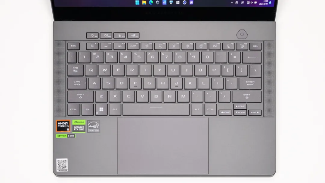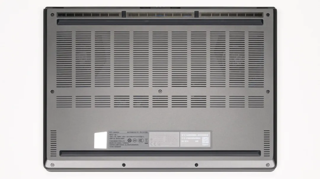 ROG 幻14 Air的机身为CNC一体制造,阳极氧化上色,质感要比天选Air好很多,但更薄的机身也令它的散热较天选Air逊色一些。