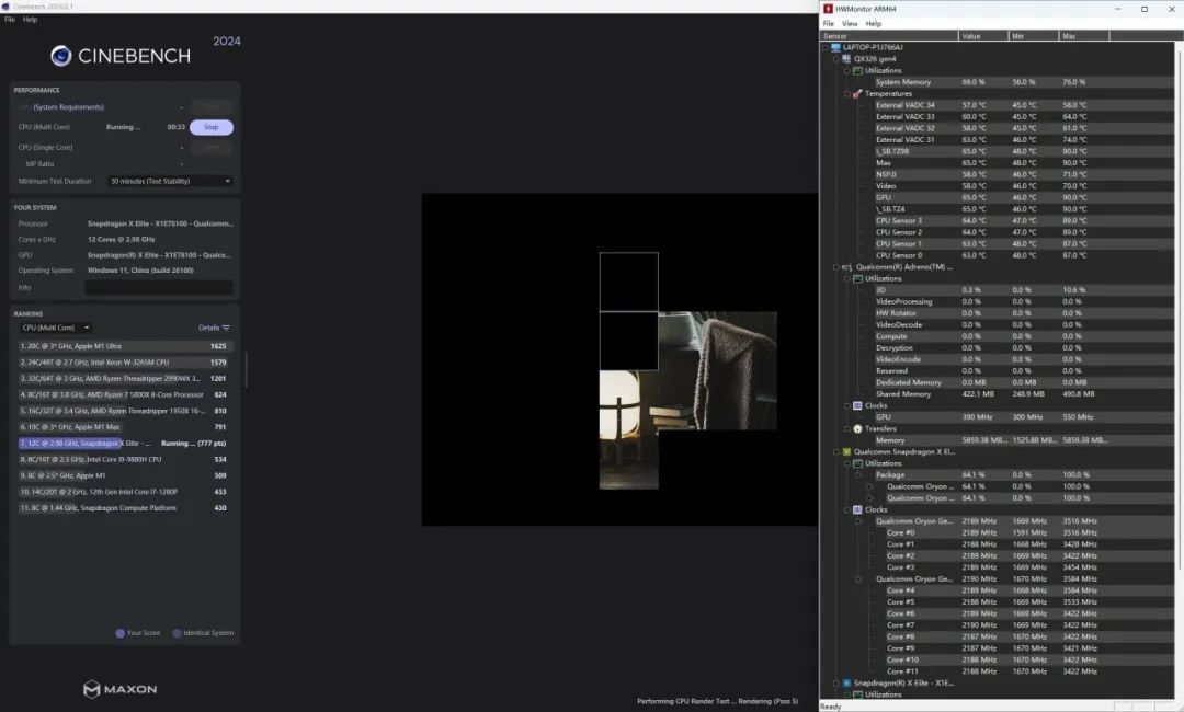 针对ARM处理器,我们使用原生支持ARM的CineBench 2024进行压力测试。