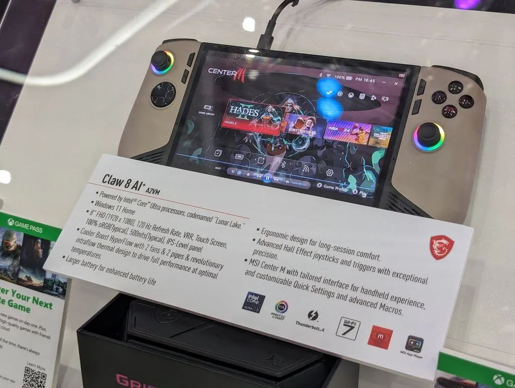 下图是台北国际电脑展上展出的下一代微星 CLAW掌机,官宣搭载了“Lunar Lake”处理器,从图中的官方介绍中我们预测:它的屏幕与散热和这一代比较近似,电池会增大。