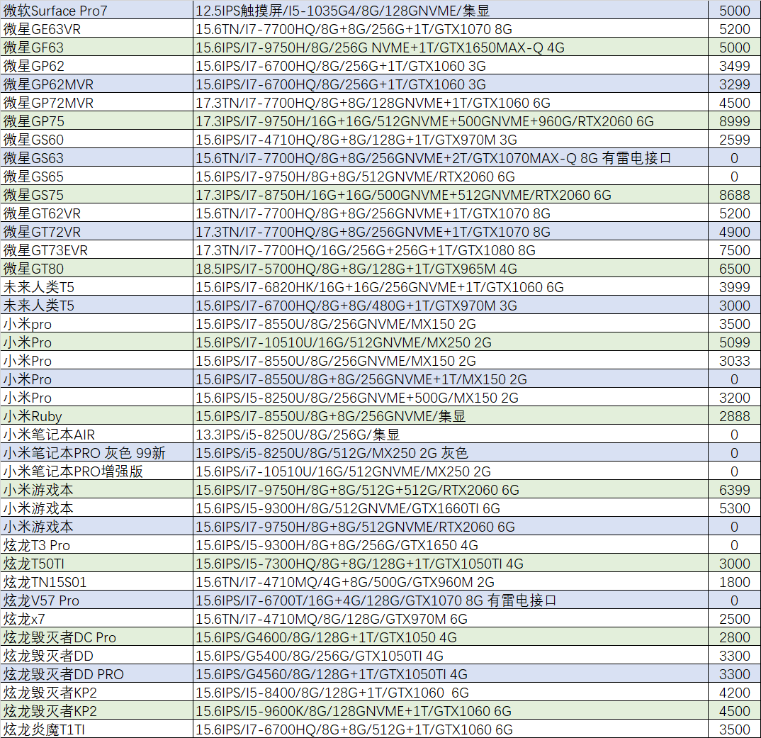 配置:15.6英寸72%NTSC/i5-6300HQ/16G/250GNVME/GTX1060 3G/背光键盘