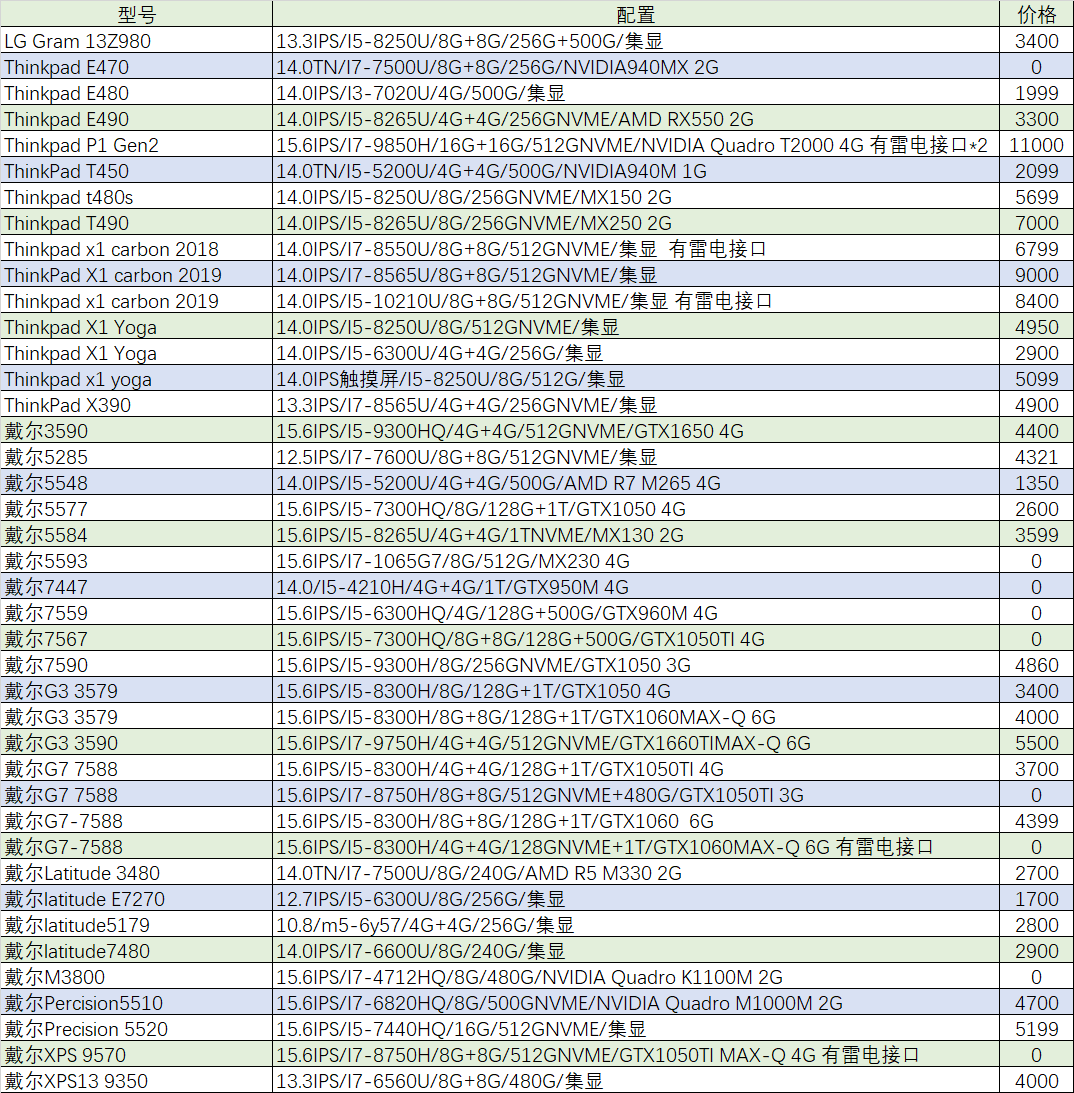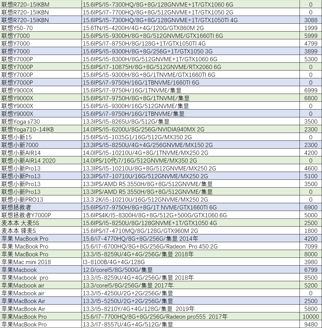 本周待售机型:(无法列出成色,价格仅供参考,0元表示卖家未定价)