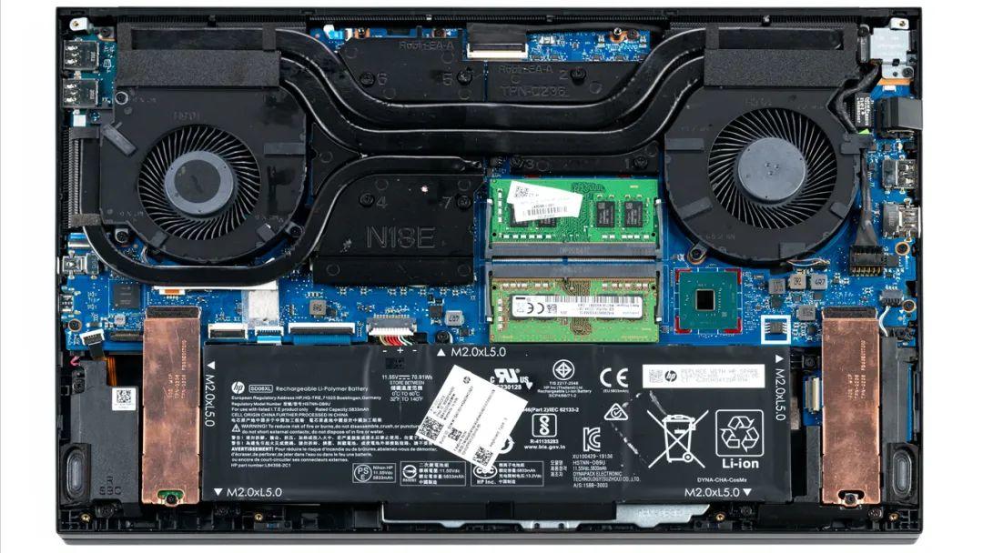 上图是惠普 暗影精灵6的拆机实拍图,3热管双风扇的组合,和AMD版几乎相同的散热模组。