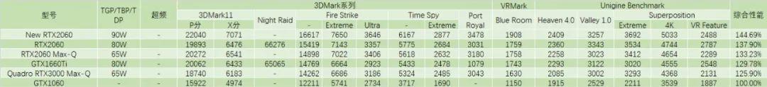 由于频率较低,RTX3000 Max-Q在常规测试中和RTX2060 Max-Q存在一定差距。
