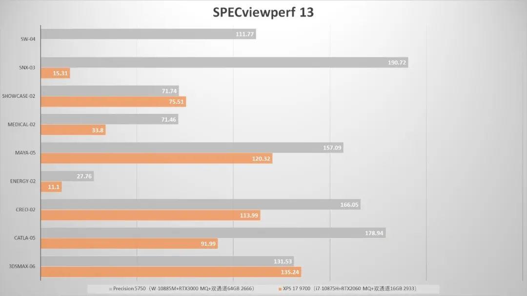 但在SPECviewperf 13这种专业应用的测试中,RTX3000依靠专业级驱动获得了明显优势。