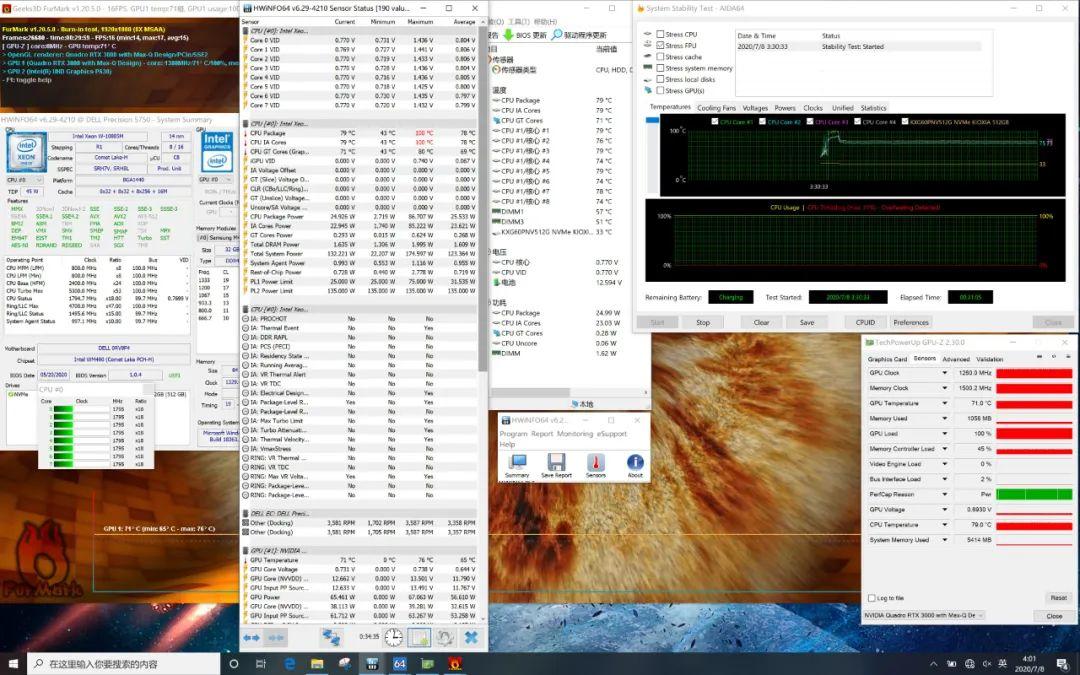 总的来说,戴尔 Precision 5750的散热规格与XPS17 9700没有明显区别,但无论是平放还是垫起,双烤的CPU功耗都要更低,DPTF的限制相对更严格,如果需要更强的性能释放,可以考虑关闭DPTF后使用。