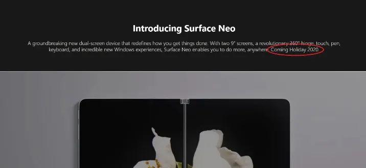 但是,微软从未正式承认Surface Neo上市延迟,今天外媒WindowsBlogItalia注意到,近期微软方面已从Surface Neo宣传页面中删除了“2020年假期即将到来”文本信息,并将其替换为空白内容。
