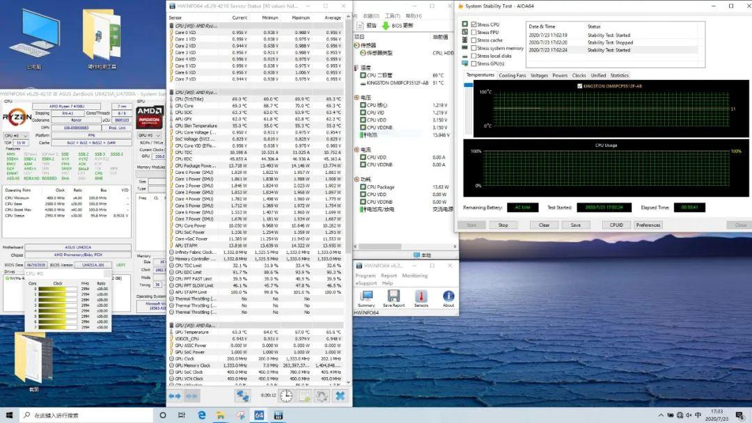 在满载状态下,CPU温度最高69℃,功耗13.8W左右,频率维持在3.0GHz。